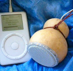 これは、近所の人にもらった百成り瓢箪で作ってみたiPod用スピーカー。