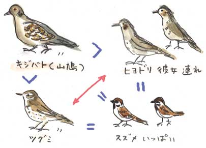 そんな無神経なツグミが気にさわるヒヨの気持ちもよくわかります。